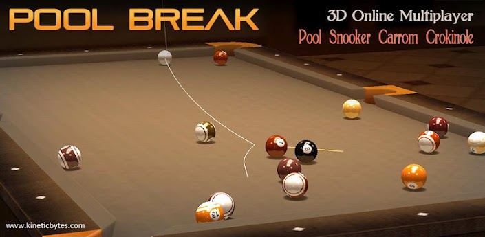Pool Break is not just a game, but an entire suite of games featuring several variations of Pool, Snooker, and the popular Crokinole and Carrom board games. The full 3D graphics are spectacular and the physics are realistic and accurate. Whether you play against the computer or against other Android, iPhone or iPad users online, the action is smooth and fast paced!